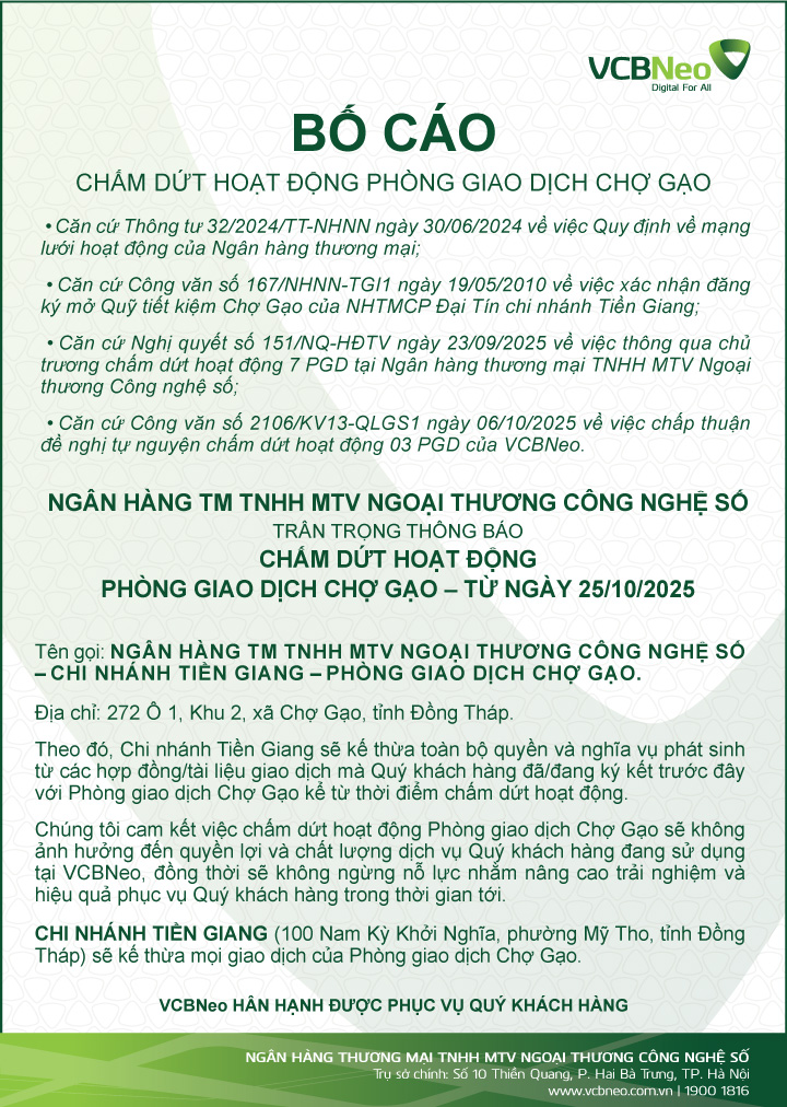 Thông báo chấm dứt hoạt động Chi ...